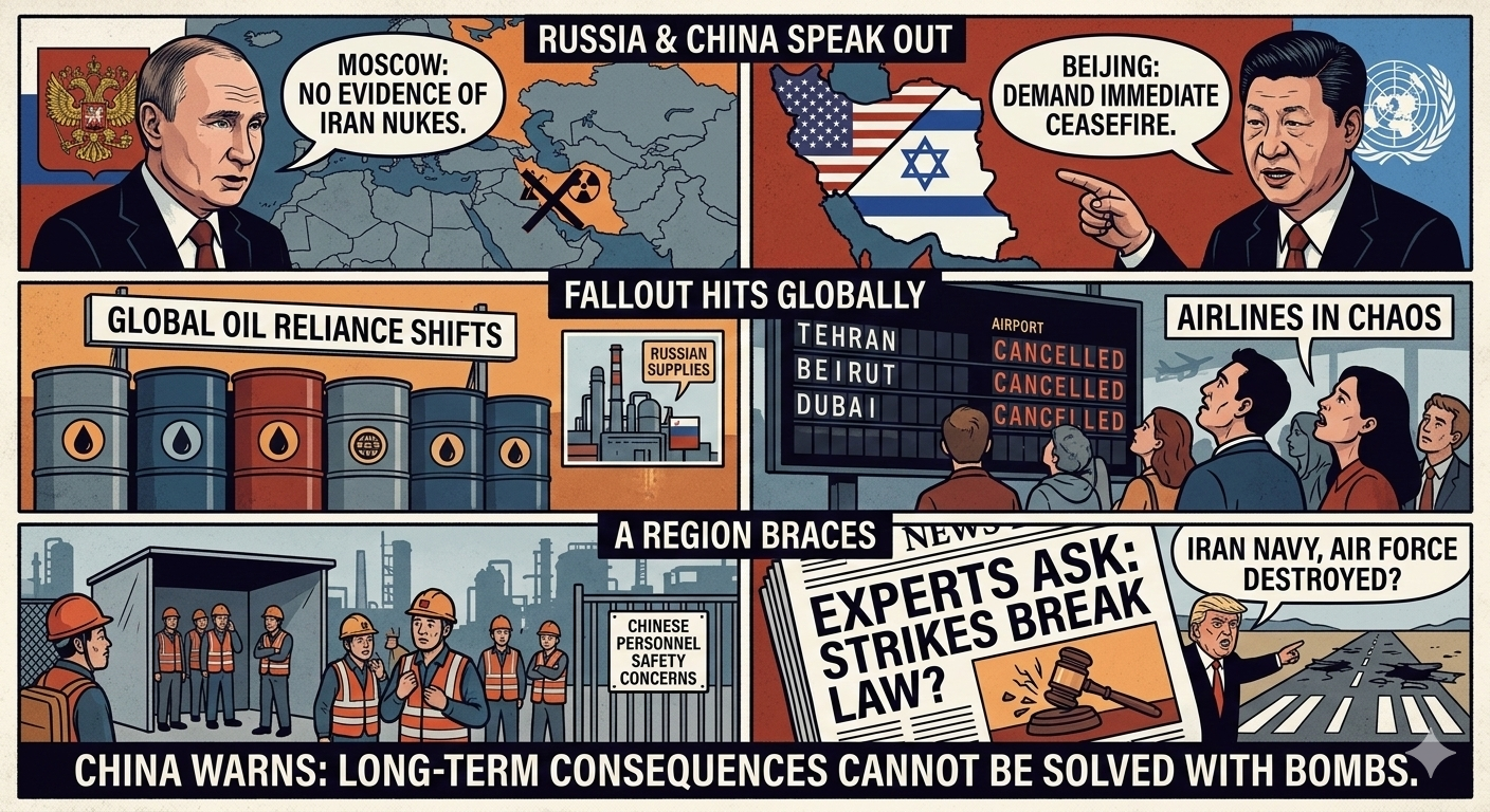 Russia and China have strongly condemned recent US and Israeli military attacks on Iran, calling them unjustified and dangerous. Both nations worry the strikes could